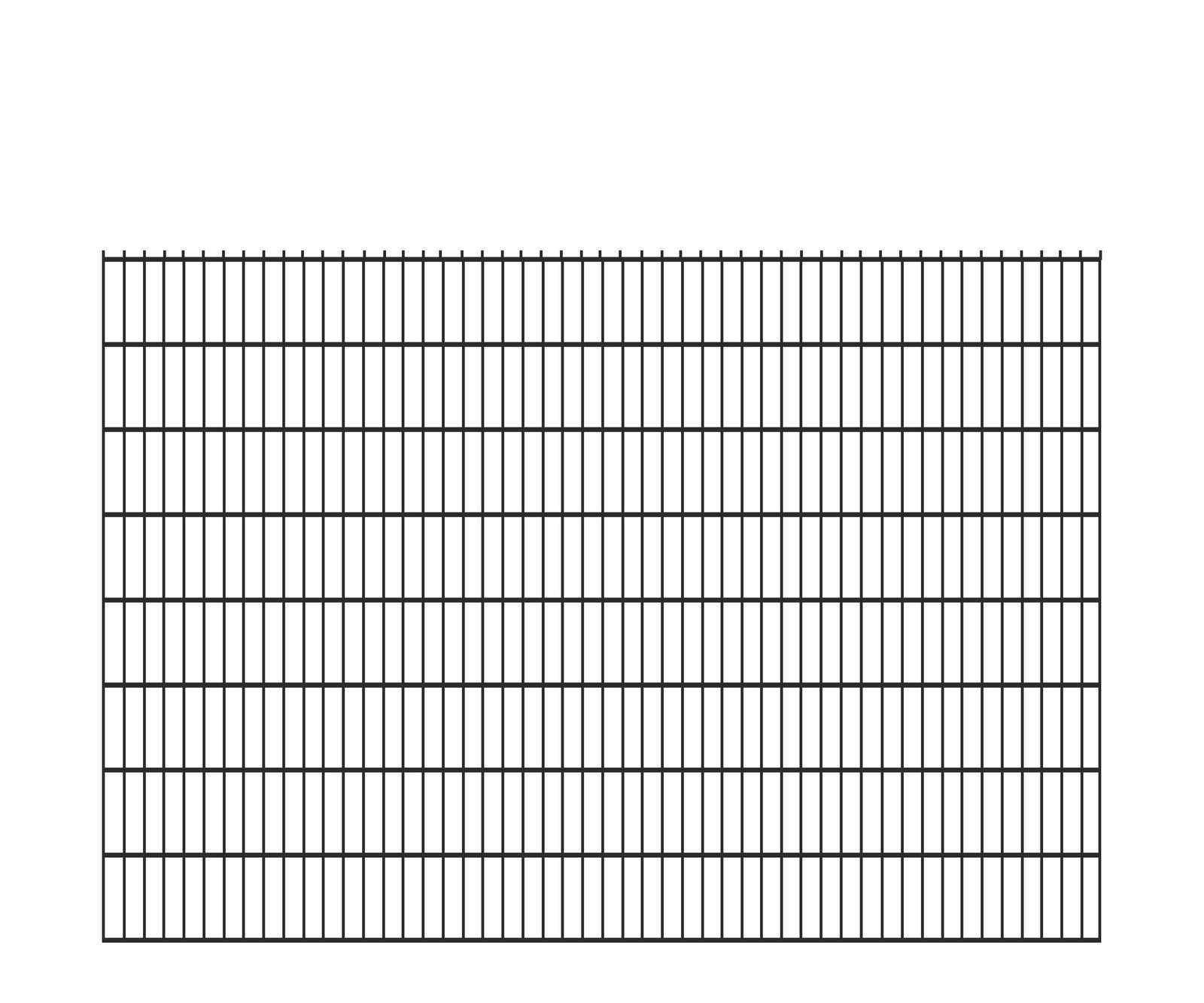 Przęsło ogrodzeniowe panelowe wykonane z drutu grubości fi 4.7 mm - pion, fi 5.7mm - poziom, wymiar oczka wynosi 50×200mm.Wykonany z niewielką oszczędnością surowca mającą znaczny wpływ na koszt produkcji.